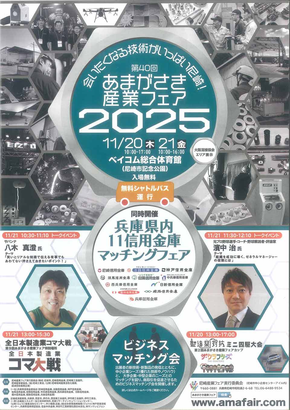 11月20日(木)、21日(金)にベイコム総合体育館で開かれる、「あまがさき産業フェア2025」に出展いたします。
